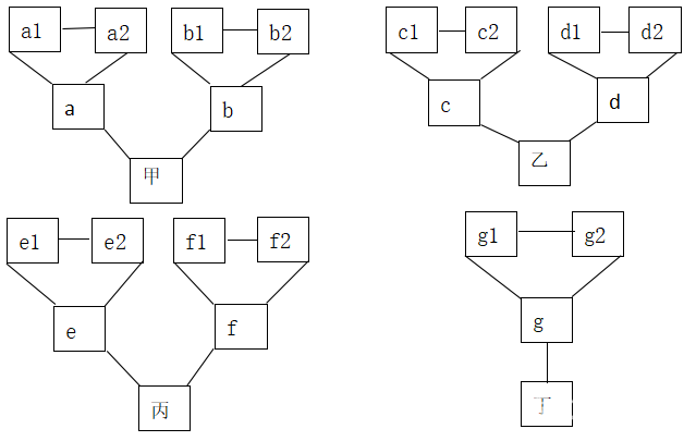 半决赛共有4支队伍参加,分2组进行比赛。甲、乙两队为第1组,丙、丁两队为第2组。